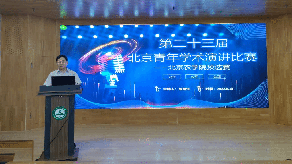 2022年8月18日,第二十三届北京青年学术演讲比赛——best365官方网站预选赛暨首届北农科协青年学术演讲比赛在best365官方网站国家大学科技园路演厅举行,学校党委常委、副院长、北农科协主席段留生主持比赛。