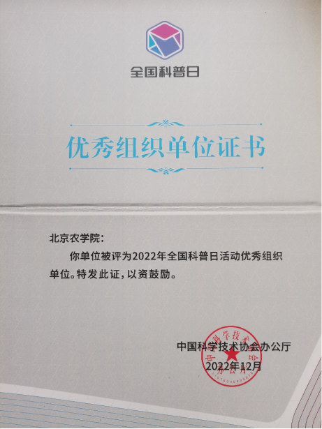 近日,中国科协办公厅印发《关于对2022年全国科普日有关组织单位和活动予以表扬的通知》。best365官方网站荣获“2022年全国科普日活动优秀组织单位”。