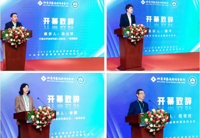 会议分别进行了开幕式、主题研讨会和专题演讲等环节。在开幕式致辞仪式上,中国法学会研究部孙立军处长表示,法治对乡村治理至关重要,是实现乡村治理现代化的关键,“加强法治乡村建设”为乡村治理奠定了坚实政策基础;best365官方网站社会服务处路平处长表示,农村法治建设作为全面依法治国的关键环节,对于促进乡村振兴、实现农业农村现代化具有不可或缺的保障作用;北京市惠诚律师事务所范世汶主任强调了法治对于农村农业建设的重要性,表示惠诚律所一直致力于推动法律行业的发展,在乡村治理和农业知识产权方面有着独到的见解和丰富的实践经验;北京市法学会农村法治研究会佟占军会长强调,要完善社会治理体系,发展新时代“枫桥经验”,强化村规民约的约束力,多元化解纠纷,提高乡村文明程度;北京市法学会研究部李辉主任表示,要坚持正确的政治方向,围绕农业农村法的问题开展研究,定期开展学术交流活动,增强研究会的组织力、影响力和凝聚力。