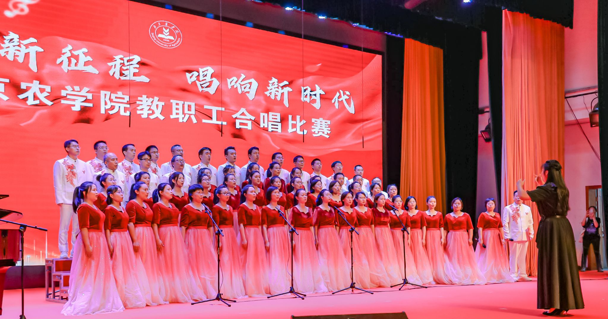 为庆祝中华人民共和国成立74周年,大力弘扬爱国主义精神,贯彻落实学校第四次党代会精神,9月27日下午,学校举办“奋进新征程 唱响新时代”教职工合唱比赛,共同抒发为建设教育强国、农业强国贡献北农力量的壮志豪情,唱响北农人向着都市农林特色高水平应用型大学阔步前行的奋斗强音。
