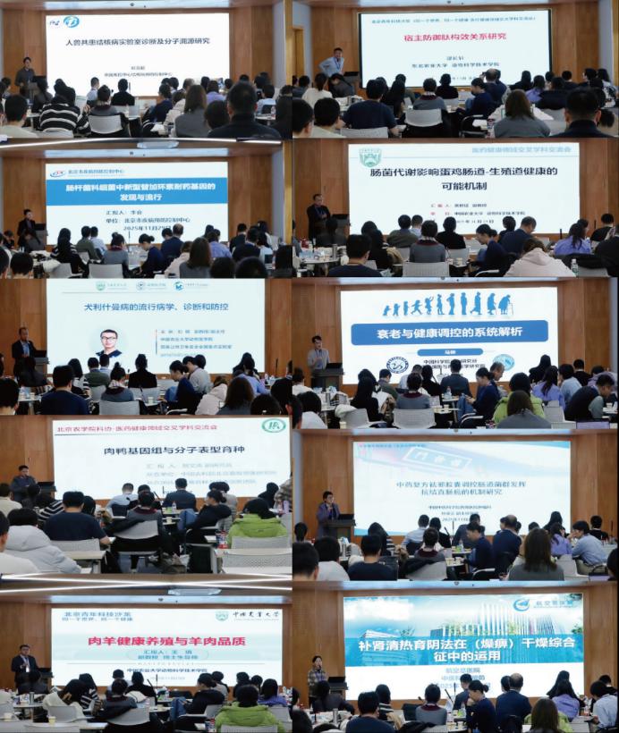 沙龙精心设置了“动物疫病”“医药健康”“人类健康”“健康养殖”四大报告板块,分别由北京市科协青年托举人才刘晓晔、夏冰、刘雪威、窦金焕四位老师组织并主持。11位来自学界与业界的专家应邀作专题报告,分享前沿见解,实现了多学科深度对话与思想碰撞。